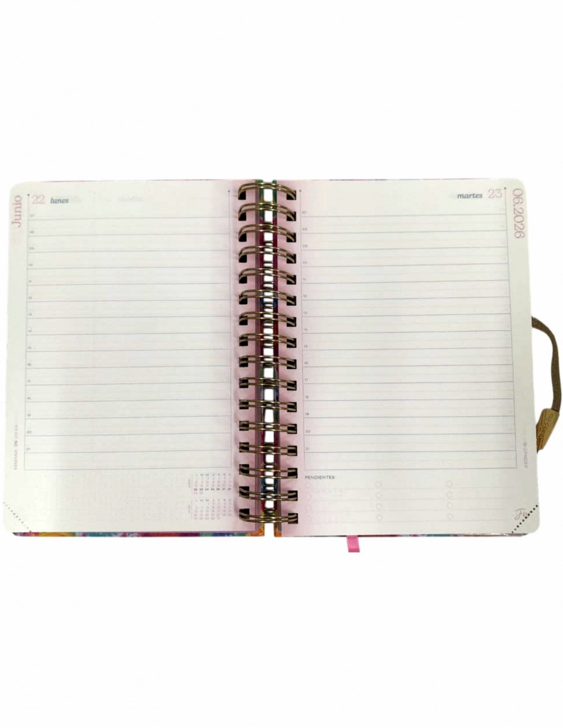 Troquel Señalador: Dispone de un troquel o perforación para señalar hojas, facilitando el acceso rápido al día actual.
