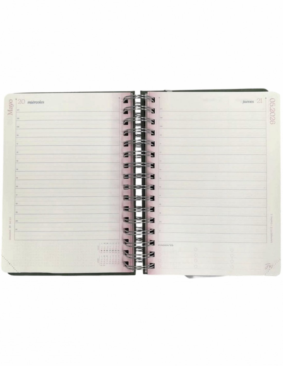 Formato Diario (1 Día por Página): Con 208 hojas dedicadas a tu planificación, el formato Día por Día garantiza que no te falte espacio para anotar reuniones, tareas, recordatorios y notas detalladas para cada jornada.