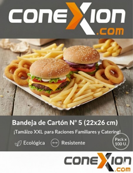 ¡Maximiza la eficiencia en el servicio de grandes pedidos y asegura la mejor presentación con las Bandejas de Cartón N° 5 de 22 x 26 cm