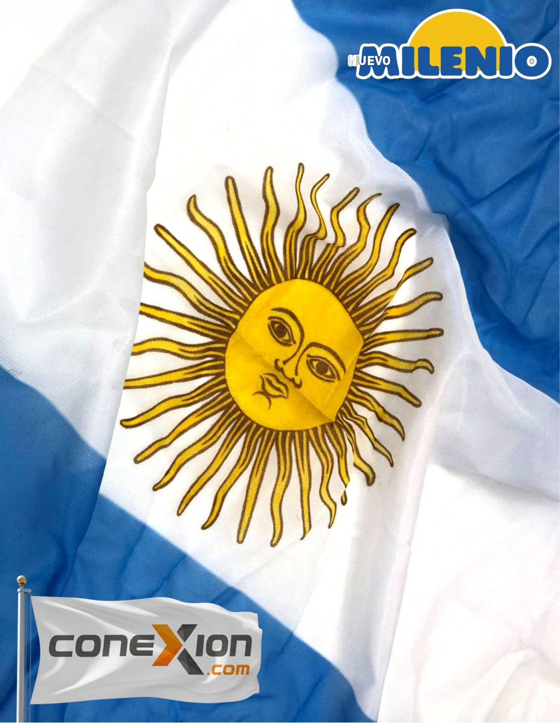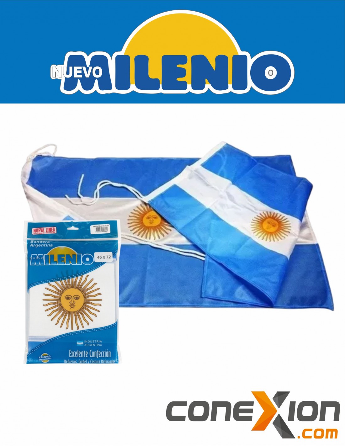 Bandera De Tela Nuevo Milenio 45 X 72 Cm Argentina Con Sol