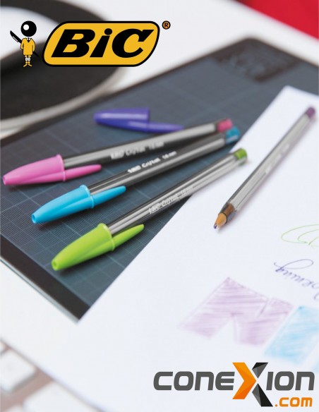 Cuerpo y Diseño: Mantiene el icónico cuerpo hexagonal de BIC, que proporciona un agarre cómodo y estabilidad al escribir. El cuerpo es transparente (o translúcido), lo que permite a los usuarios controlar el nivel de tinta de cada bolígrafo. Los capuchones y tapones indican el color de la tinta para una selección rápida.