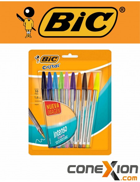 Modelo y Presentación: Pertenece a la línea BIC Cristal Intenso, diseñada para una escritura más visible y de alto impacto. Viene presentado en un blíster o caja compacta de 10 unidades de colores surtidos.