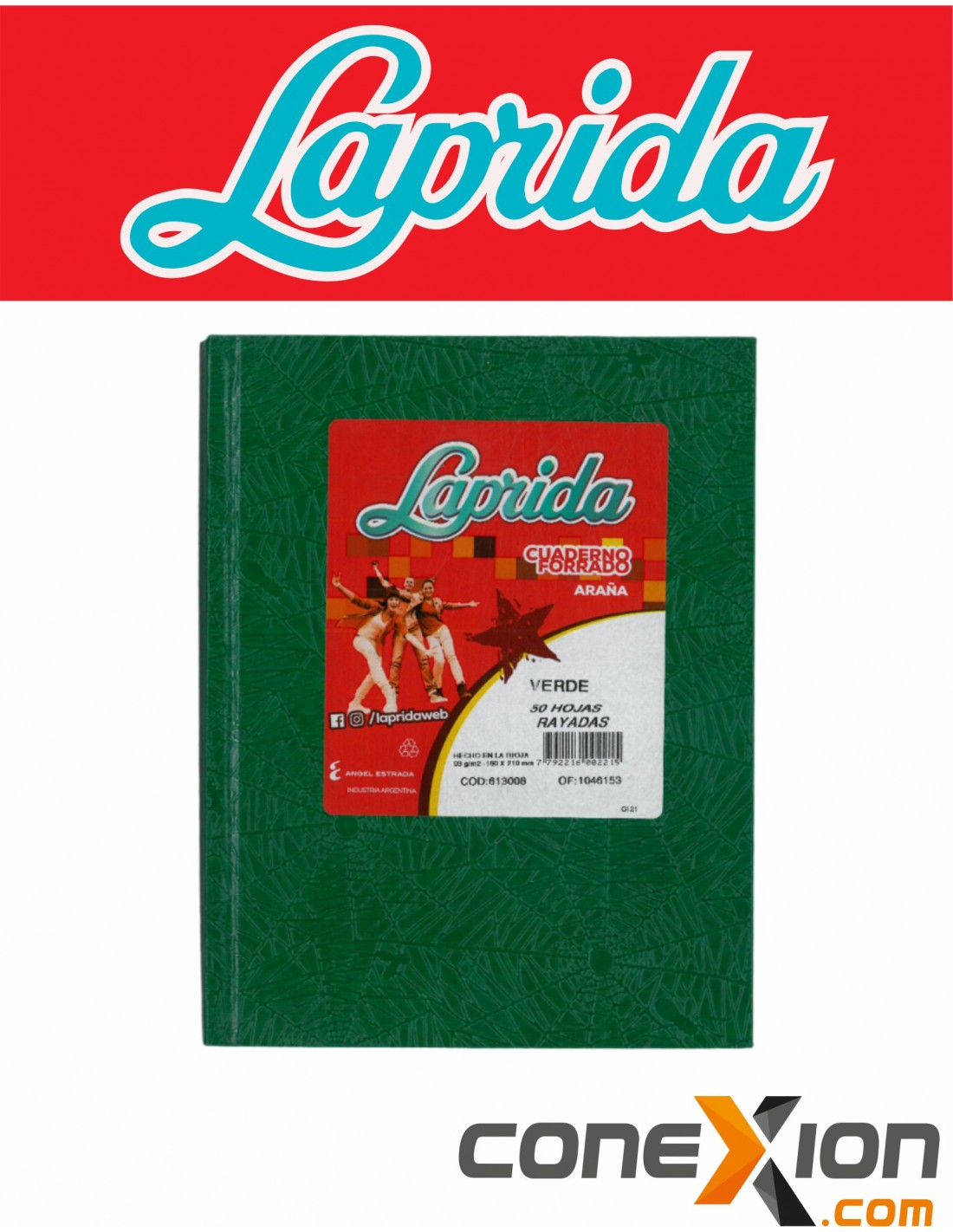 Cuaderno Escolar Laprida Nro 1 Forrado Araña T/dura X 50 Hojas Verde