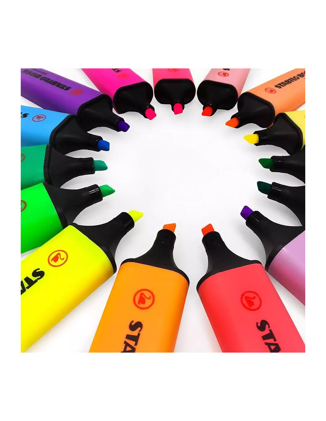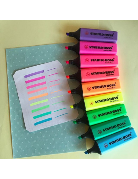 Resaltador disponible en 9 atractivos colores fluorescentes.