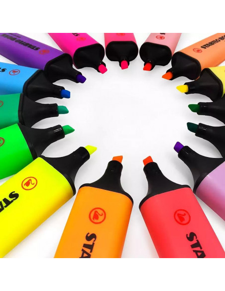 Resaltador disponible en 9 atractivos colores fluorescentes.
